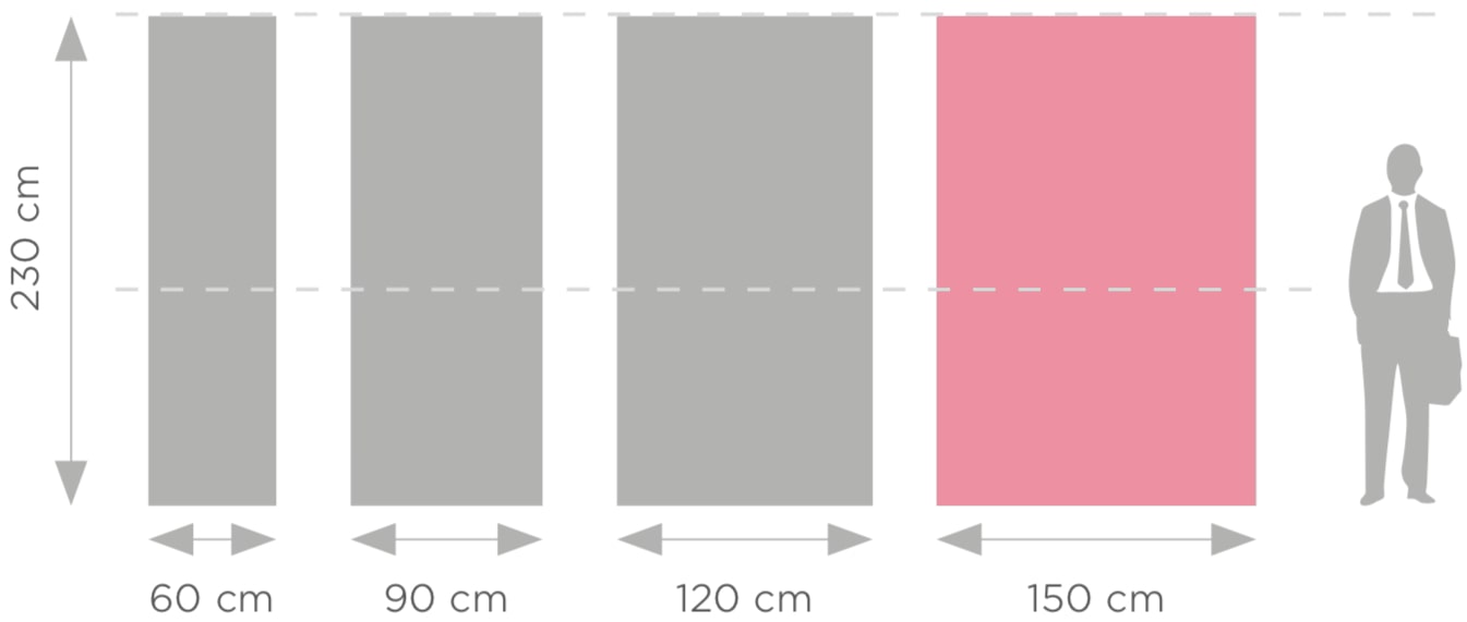 Atlantis series is a group of products used to present graphics on fabric. It has extremely simple and light frame. In Expo model, aluminium legs have been replaced with a metal plate. This base makes this system more stable. With the fabric being pulled on a frame, this stand is capable of presenting both single- or double-sided graphics.