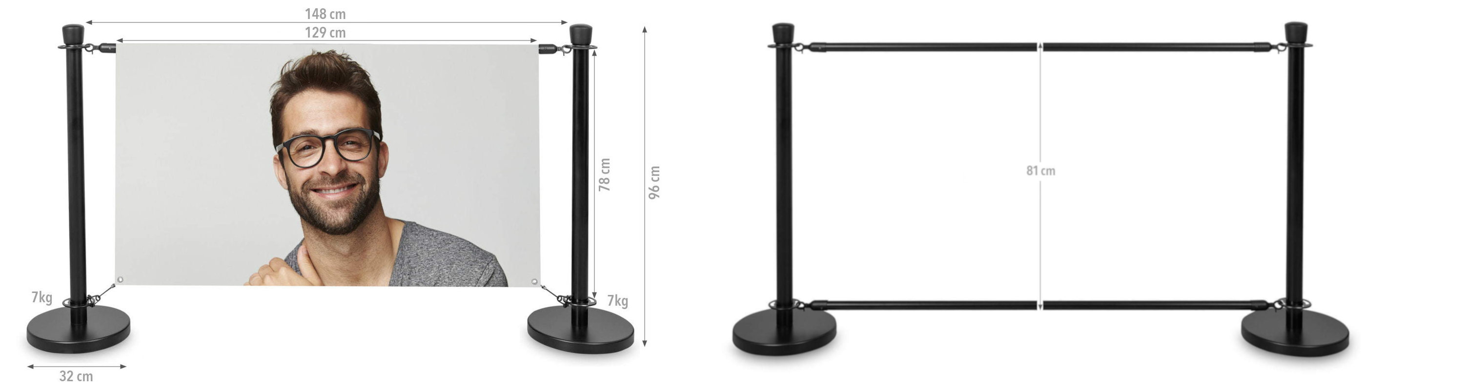 Cafeteria post sets are a perfect way to combine an elegant visual advertising medium and a product creating separate spaces, e.g. in restaurants, cafes or shops. The printout can be made on a fabric or a regular frontlit banner. The product has earned the greatest recognition in restaurants and cafes forming the so-called outdoor gardens.