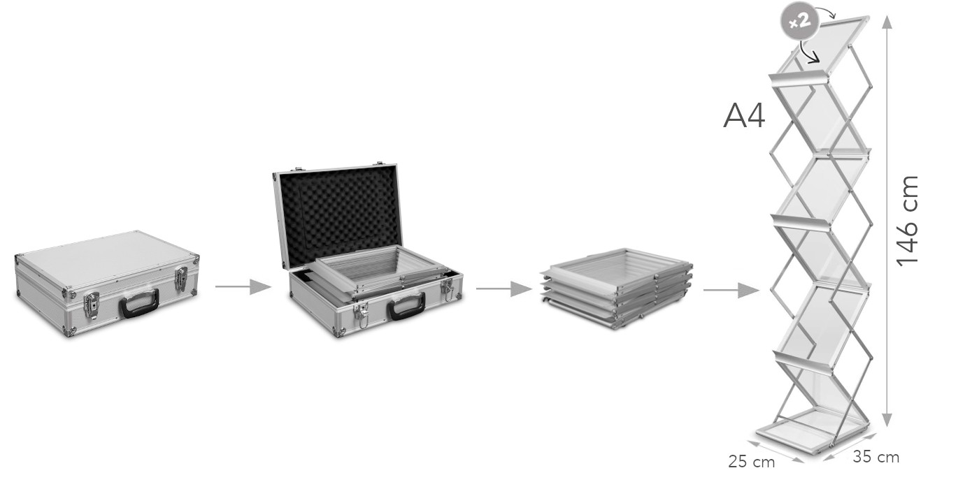 This set includes: Montana brochure holder and an aluminium case.