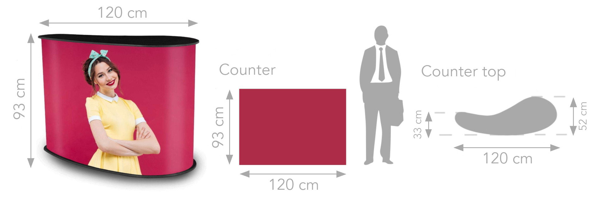 Promo counters have enjoyed high popularity on many markets due to its simple assembly. The counter’s panels are made of multi-chamber PCV board and fixed to the top and the base by velcro strips. With such simple and lightweight construction, both assembly and disassembly take no more than a minute. Wooden base and counter top make the stand look very good and make the counter very stable.