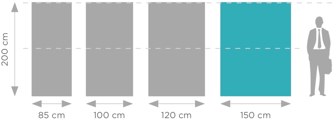 This set includes: Premium roll up cassette, two poles, “Express Clip” top bar, 3M adhesive tape, double padded “Premium” carrying bag with a business card pocket and an individual carton box.