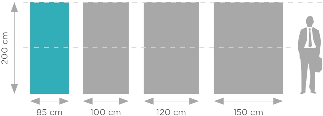 This set includes: Premium roll up cassette, one pole, “Express Clip” top bar, 3M adhesive tape, double padded “Premium” carrying bag with a business card pocket and an individual carton box.
