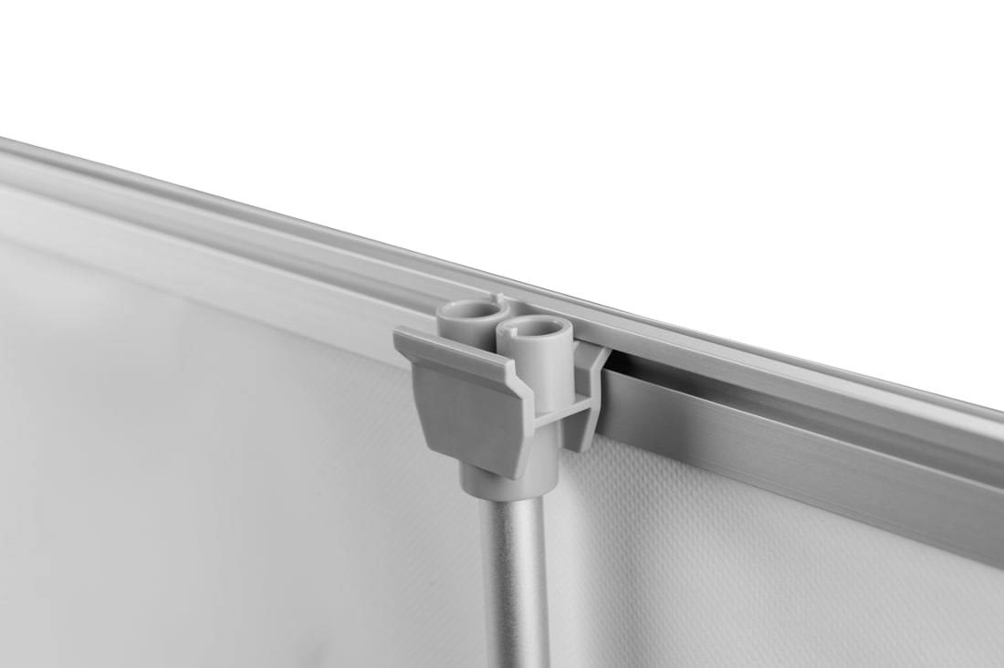 This set includes: PRO roll up cassette, one pole, “Express Clip” top bar, 3M adhesive tape, double padded “Premium” carrying bag with a business card pocket and an individual carton box.