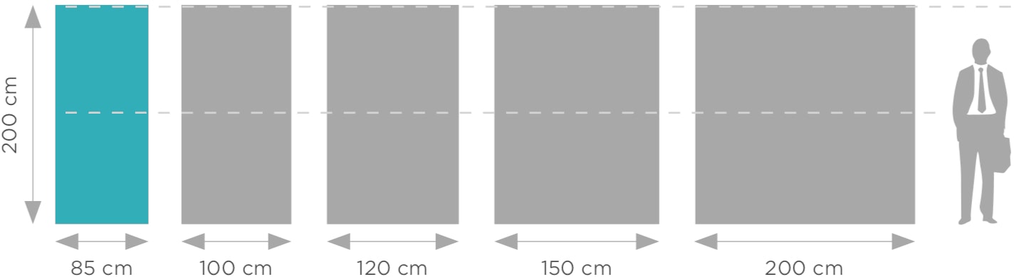 This set includes: PRO roll up cassette, one pole, “Express Clip” top bar, 3M adhesive tape, double padded “Premium” carrying bag with a business card pocket and an individual carton box.